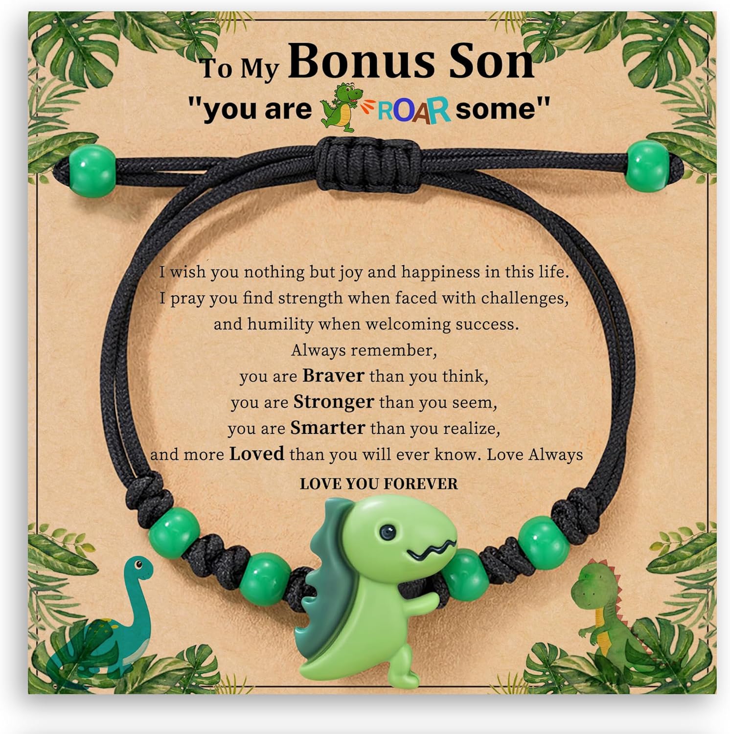 Dinosaur Bracelets for Teen Boys Gifts for Son/Nephew/Grandson Black Beaded Bracelets with Dinusaur Back to School/First Day Of schoo/Birthday Gifts for Him/Bonus Son/Brother Kindergarten