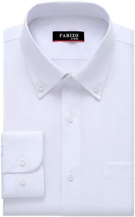 FAHIZO Men's Dress Shirt Regular Fit Soild Casual Business Formal Long Sleeve Button Down Shirts with Pocket