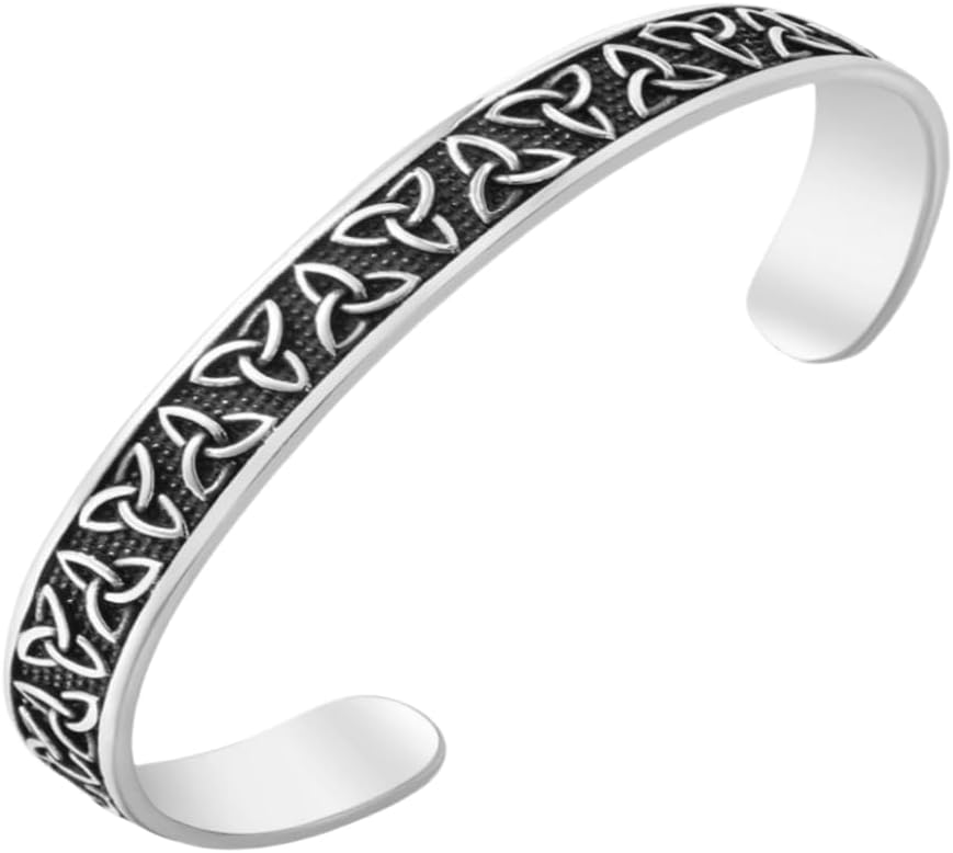 YWMAN Viking Celtic Knot Cuff Bracelet - Stainless Steel Trinity Triquetra Cuff Bangle, Norse Amulet Jewelry for Women, Men