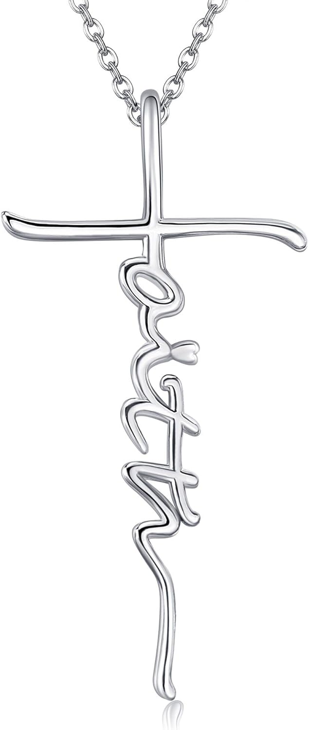 URONE Faith Necklace for Women Sterling Silver Cross Faith Pendant Necklace Christian Religious Jewelry Gifts