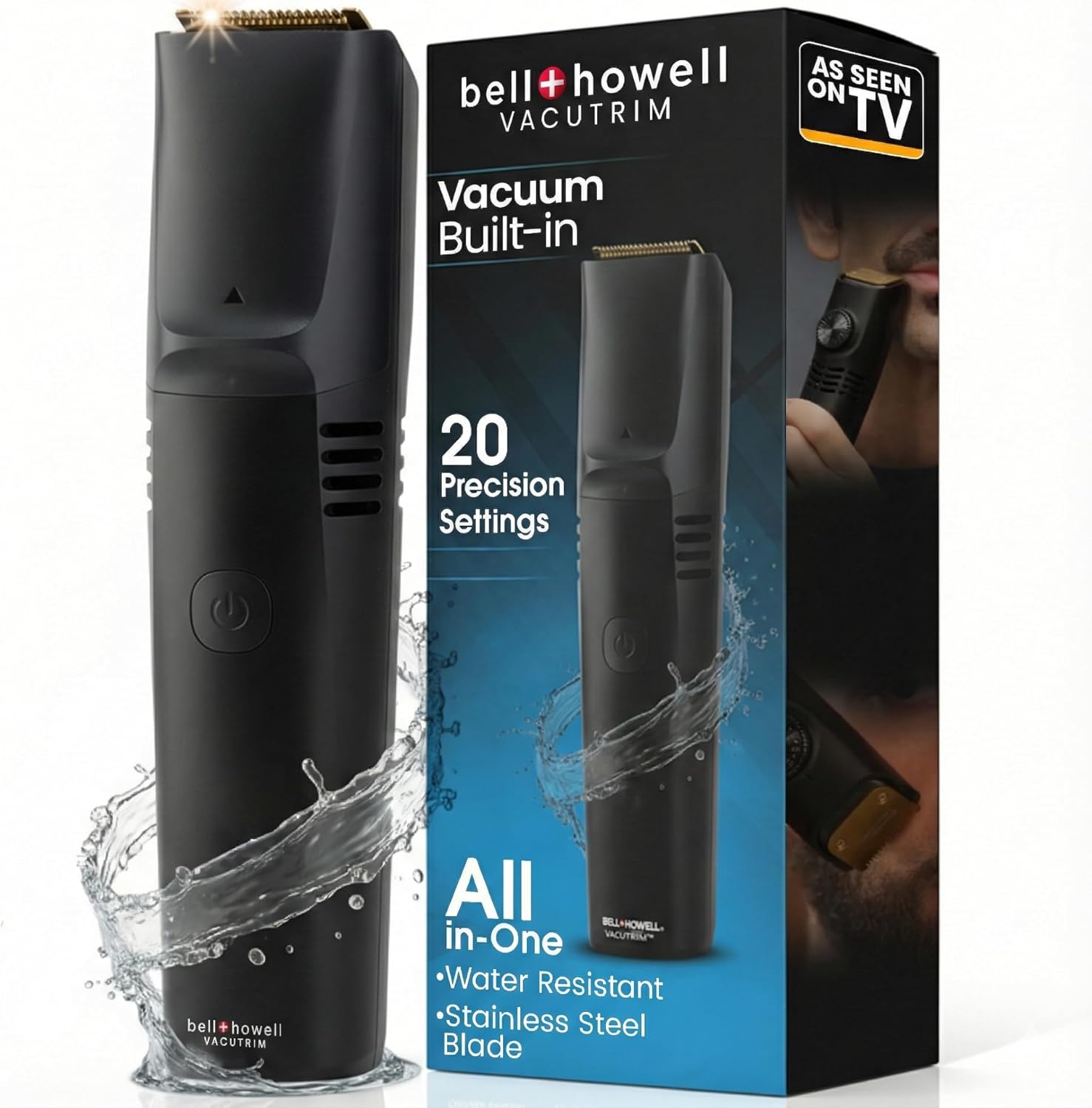 Vacutrim Cordless Mens Beard Trimmer, Rechargeable Electric Shaver with 20 Trim Setting Calibration Dial and Built-in Vacuum for Mustache, Sideburns. Facial Hair, Black, 7.5", As Seen On TV
