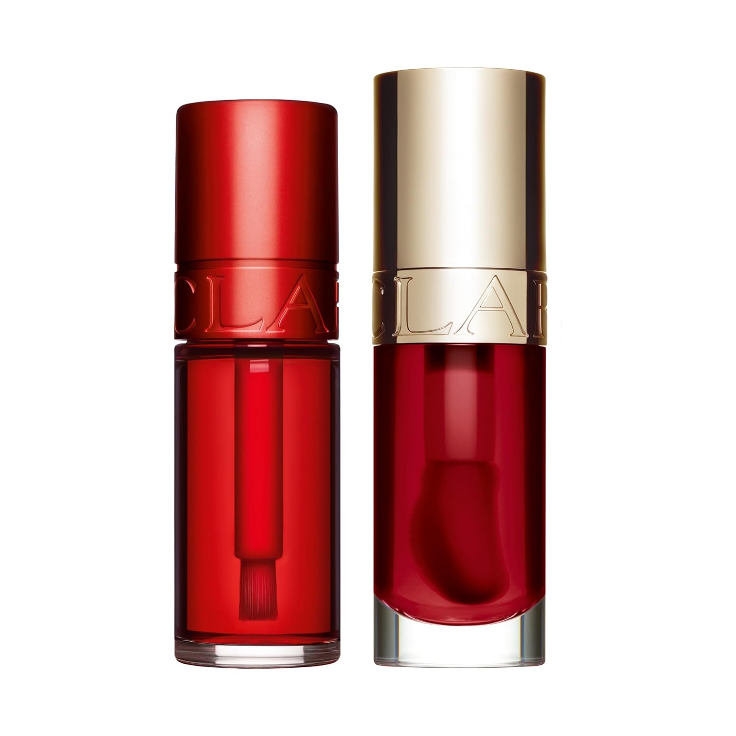 Clarins Water Lip Stain, 03 Red Water and Lip Oil, 03 Cherry Bundle | Buildable, Matte Finish Lip Stain | Sheer, High Shine Finish Lip Oil