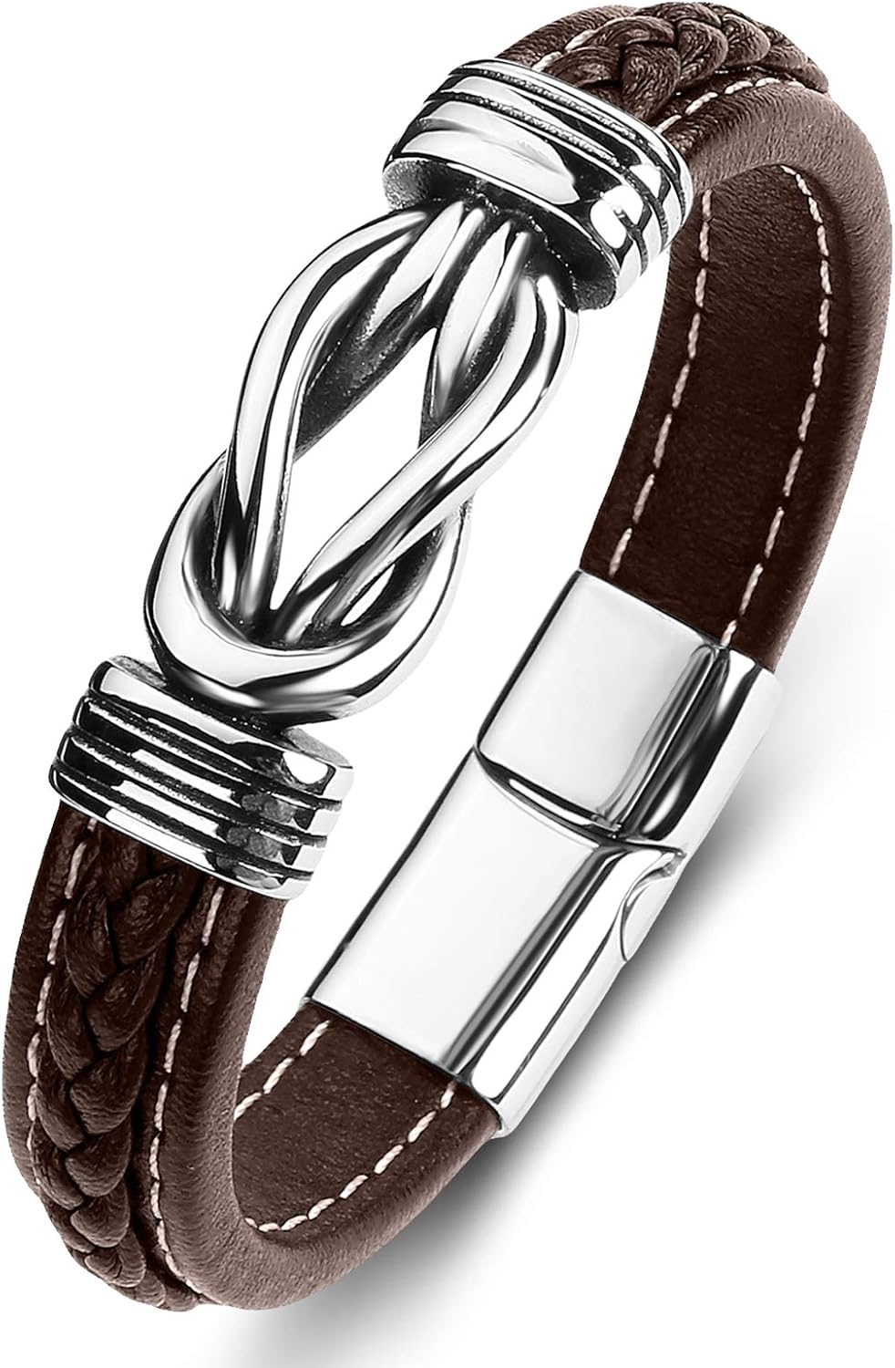 Mens Leather Bracelet,Braided Leather Wristband Cuff Bracelets Stainless Steel Clasp,Jewellery Gift for Men