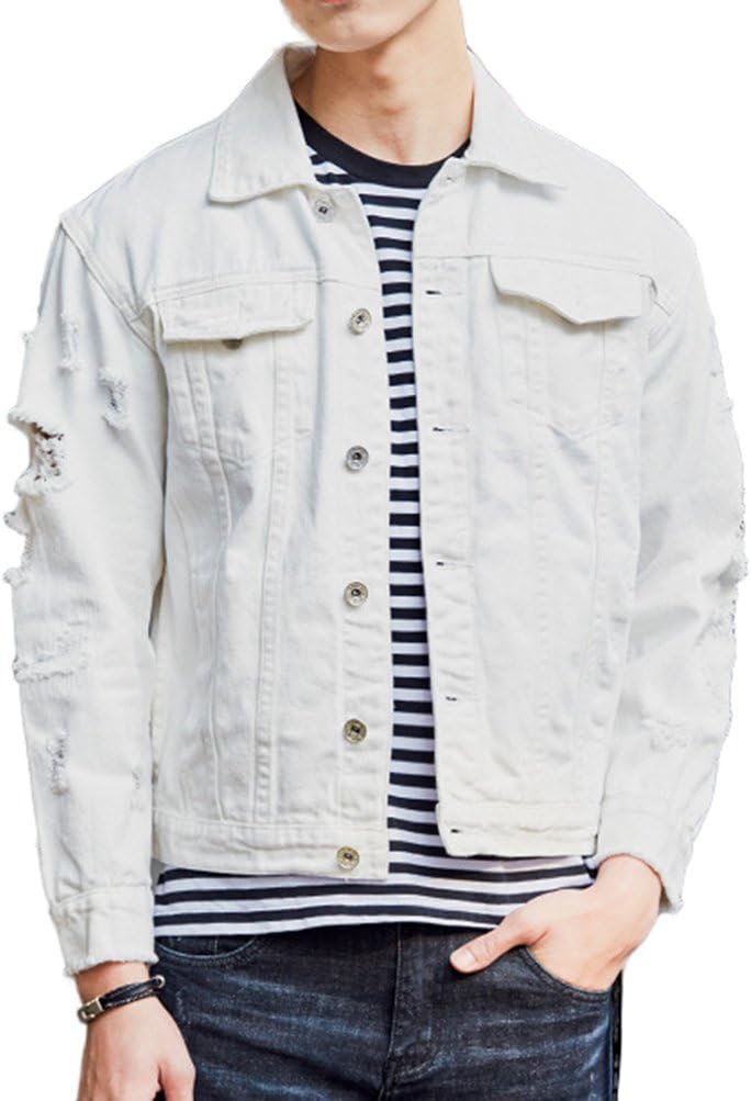 Men`s Retro Vintage Washed Ripped Hip Hop Motorcycle Denim Jacket