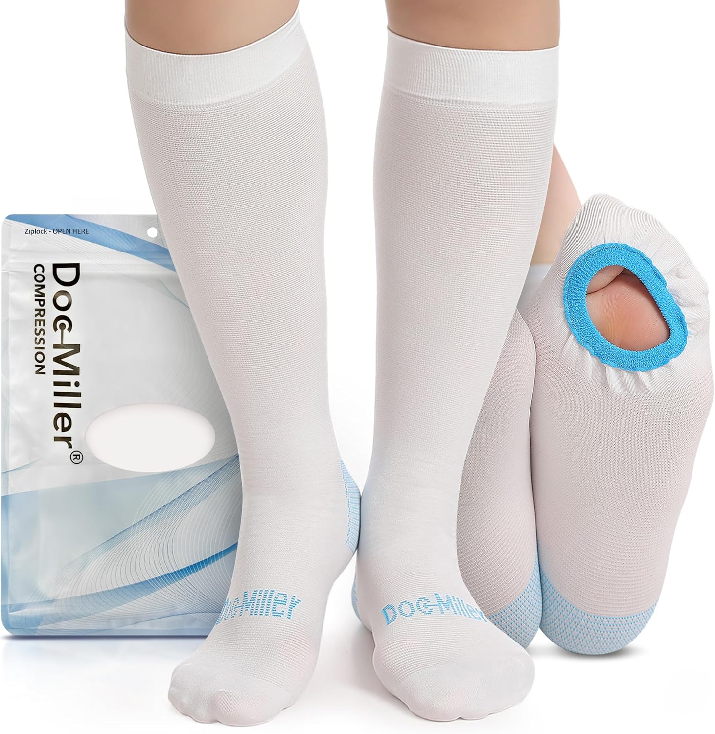Doc Miller TED Hose Knee High Anti Embolism Stockings for Women & Men, Hospital Style Surgical Stockings, Plus Size White Compression Socks 15-20mmHg, Support Hose with Inspection Hole (M-5XL)