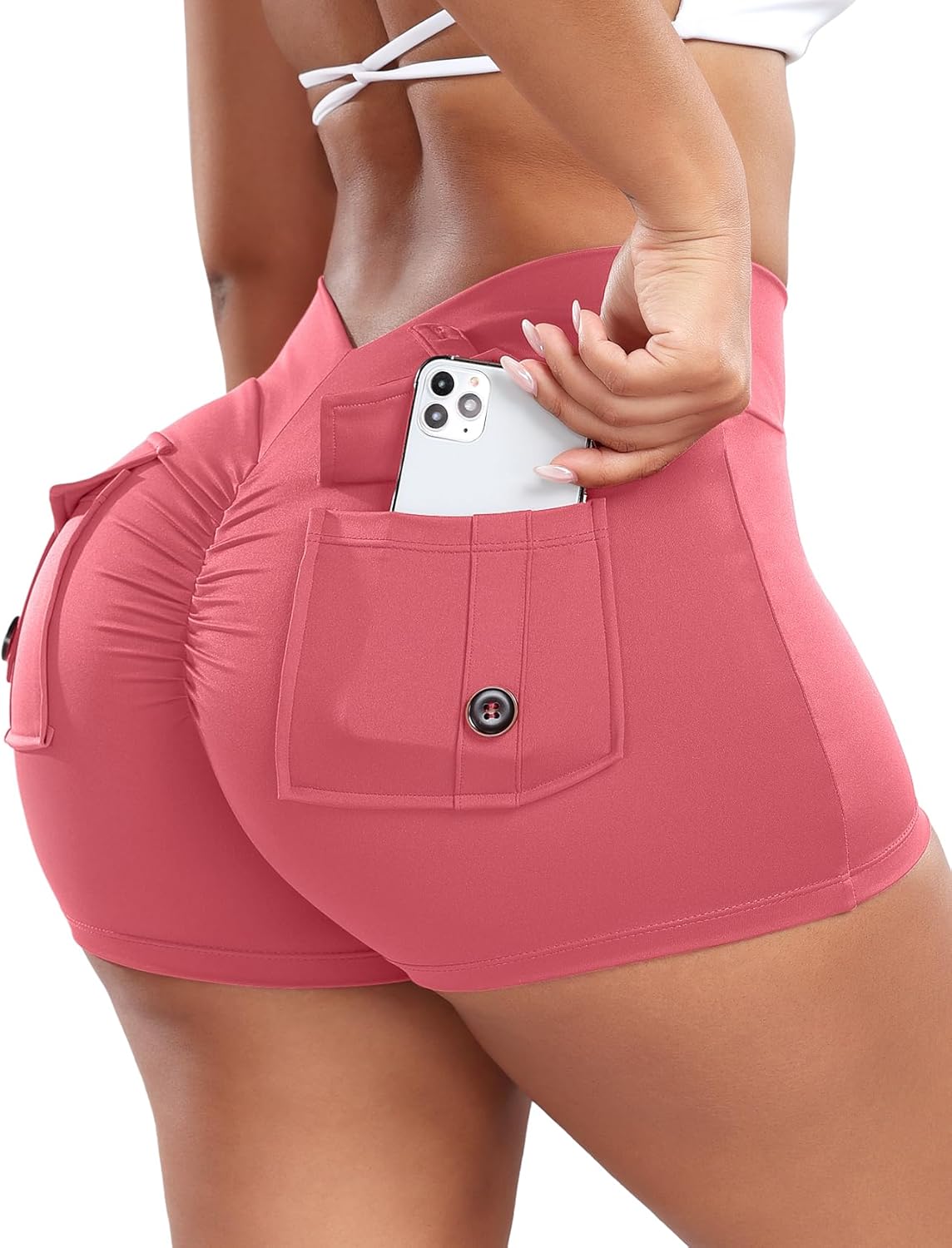SEASUM Women Pocket Shorts 3"/4.5" Scrunch Butt Workout Cargo Shorts V Waist Yoga Booty Lifting Gym Bottom