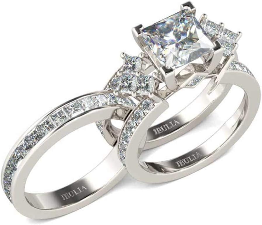 Jeulia 4.1 Carat Bridal Ring Sets for Women Princess Cut Engagement Rings Sterling Silver Wedding Band Interchangeable Rings Promise Anniversary with Jewelry Box