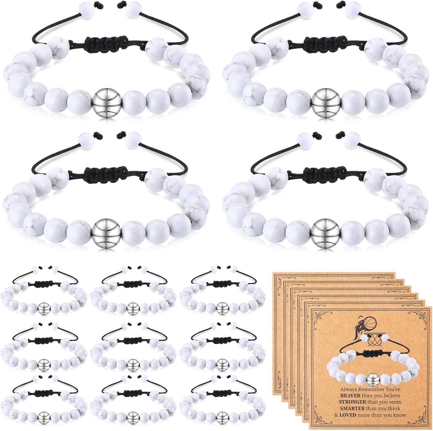 24 Set Basketball Bracelets Sport Team Gifts Adjustable Turquoise Stone Beaded Bracelets Bulk with Blessing Card Basketball Party Favors for Players Team Lovers