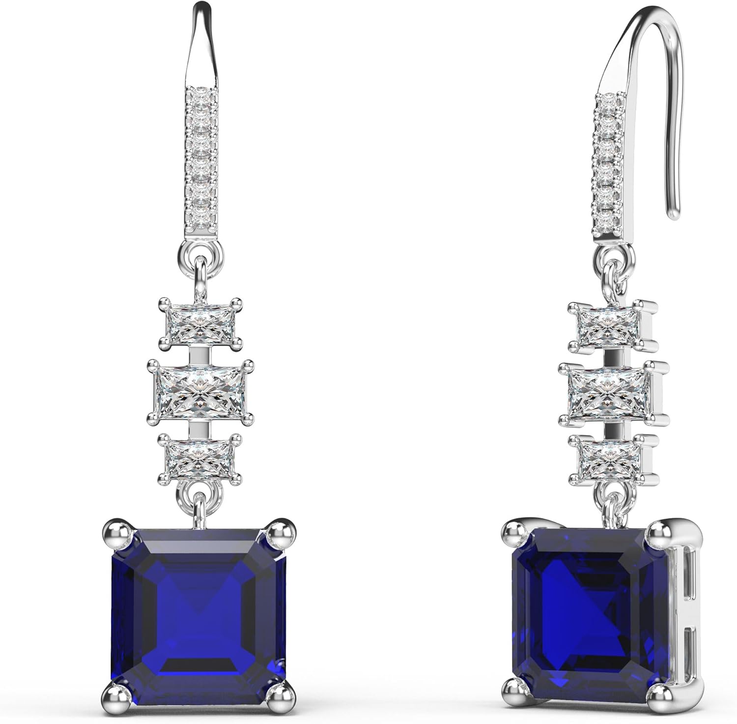 18K White Gold Plated Sterling Silver Asscher Cut Cubic Zirconia Dangle Earrings for Women Square CZ Diamond Drop Dangling Earrings for Women Mom