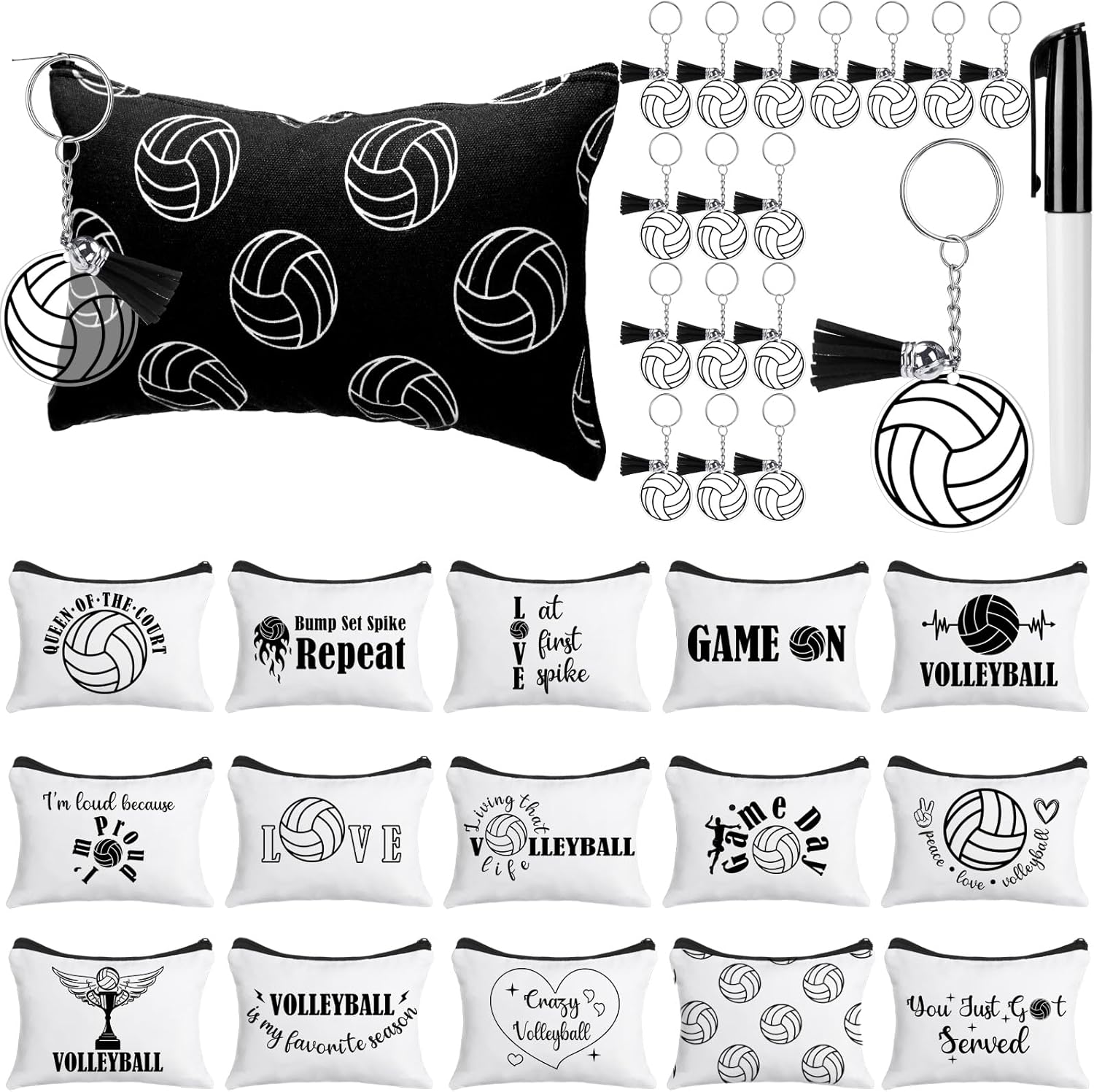 33 Pcs Valentines Day Volleyball Party Favors Include 16 Volleyball Makeup Bag Canvas Cosmetic Bag 16 Acrylic Keychain with a Marker for Birthday Team Lover Gift Filler