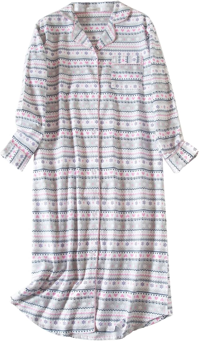 ASHER FASHION Womens Long Flannel Nightgown Button Down Sleepshirt Long Sleeve Nightshirt