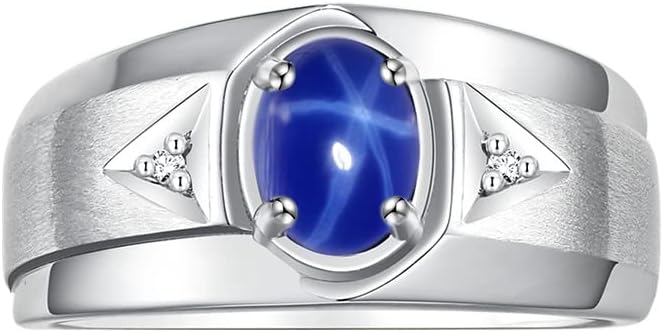 Rylos Men's Rings Classic Design 7X5MM Oval Gemstone & Sparkling Diamond Ring - Color Stone Birthstone Rings for Men, Sterling Silver Rings in Sizes 8-13. Timeless Elegance!
