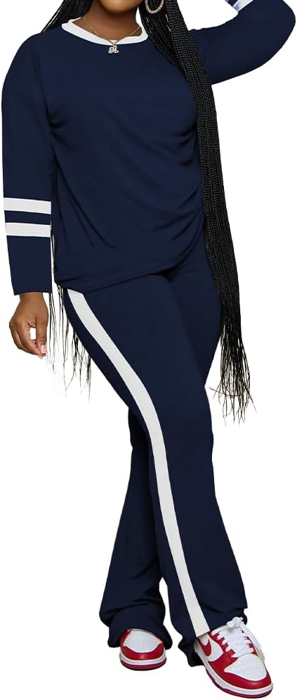PINSV 2 Piece Sets for Women Fall Casual Outfits Long Sleeve Top and Flare Pants Lounge Sets Track suit