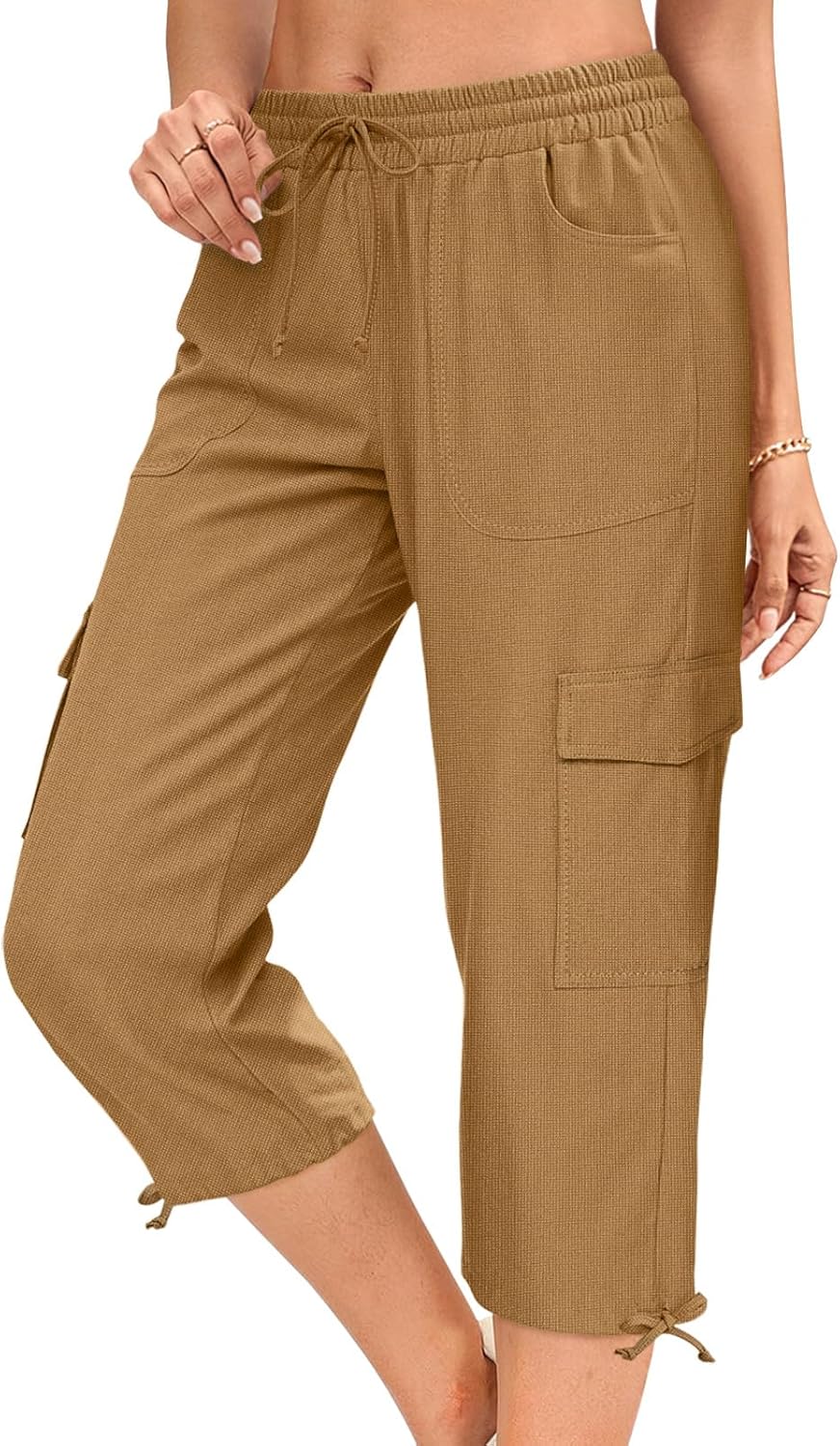 HOTGIFT Women Capris Cargo Pants 2026 Summer Hiking Pants Casual Lightweight Outdoor Quick Dry with 6 Pockets