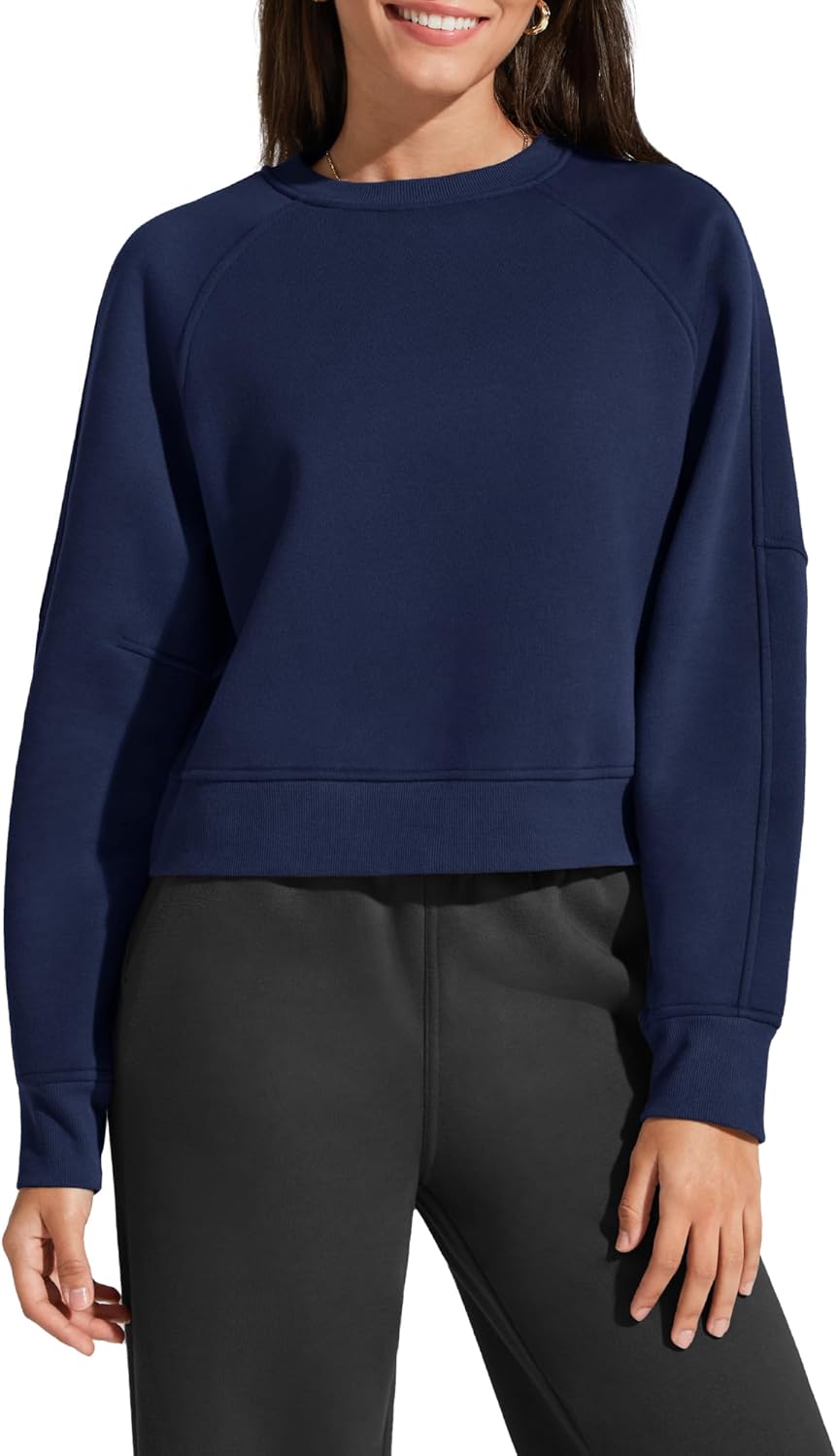 G4Free Flurrylux Women's Cropped Crewneck Sweatshirts Fleece Lined Loose Fit Pullover Fall Clothes Casual Tops
