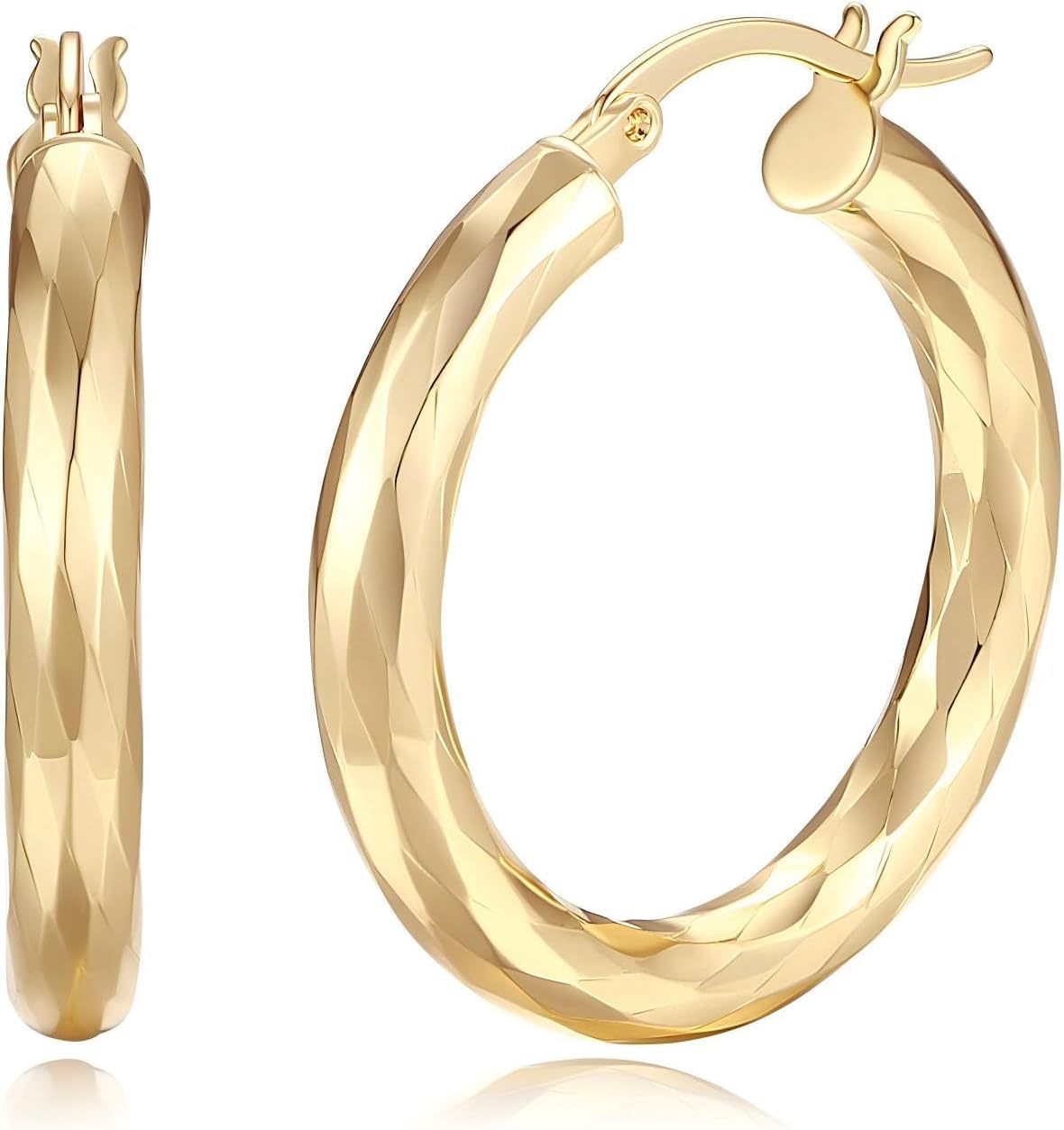 14K Gold Hoop Earrings For Women Trendy Gold Earrings Classic Line Shiny Polished Hypoallergenic Hoop Earring for Women