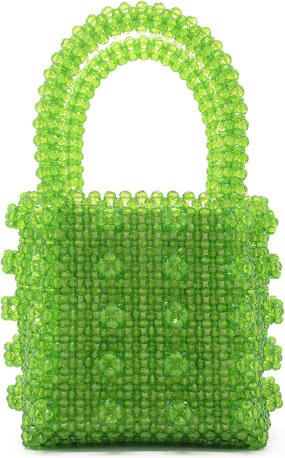 Miuco Womens Beaded Handbags Handmade Weave Crystal Pearl Tote Bags