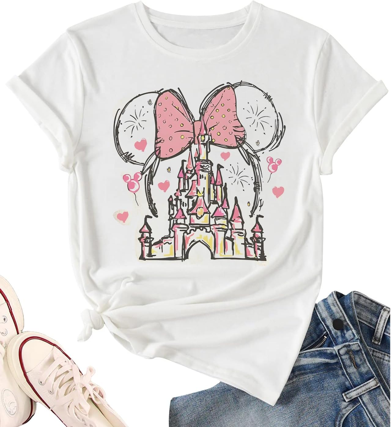 Magical Shirt for Women Castle Graphic Tee Magic Kingdom T Shirt Cute Holiday Vacation Shirt Short Sleeve Casual Tops