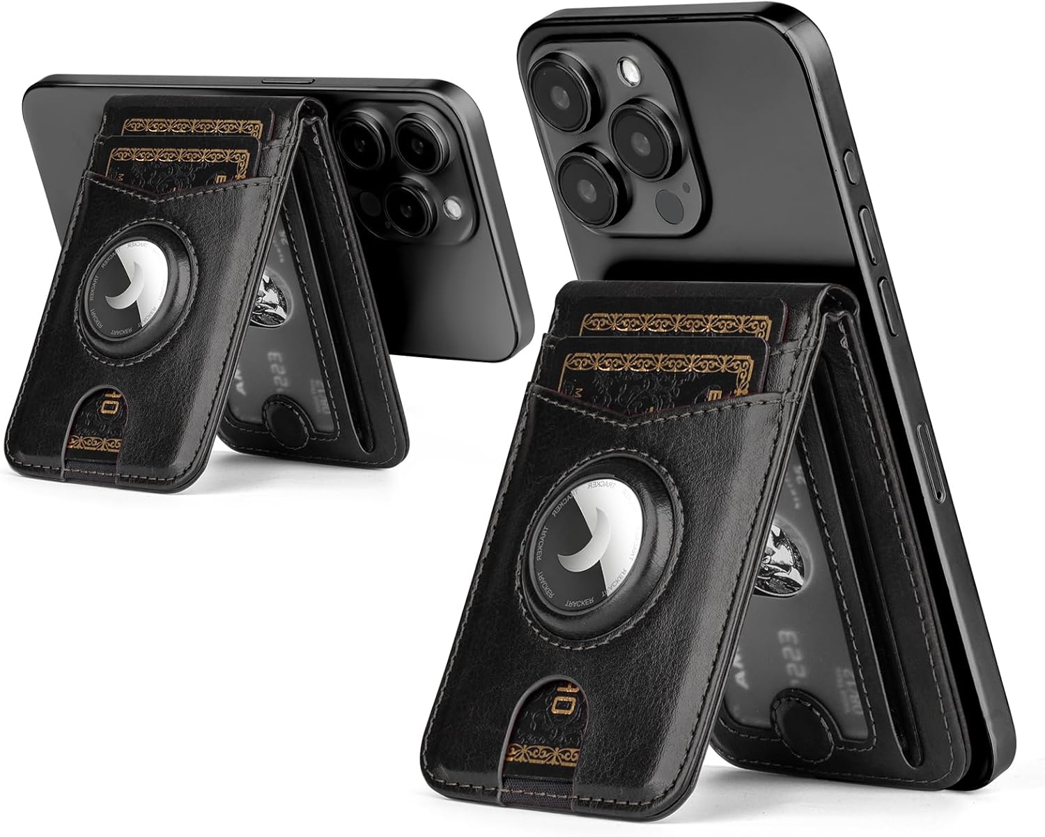 - Detachable Magnetic RFID Blocking Card Holder:Compatible with Magsafe phone cases,the magnetic card holder has strong magnetism,can adhere to each other and be detachable.The new design provides 5 independent card slots,using RFID shielding material to protect your card information from unauthorized scanners,and 1 integrated Tracker pocket(NOTE:Tracker not included)