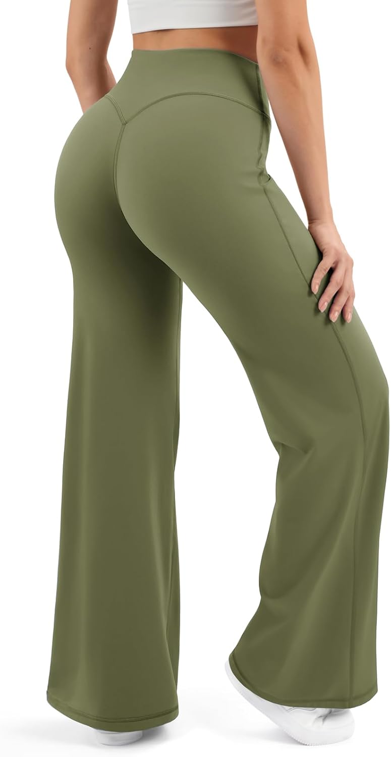 Flare Yoga Pants for Women High Waisted Wide Leg Flared Pants Leggings Crossover with Tummy Control Gym Clothes