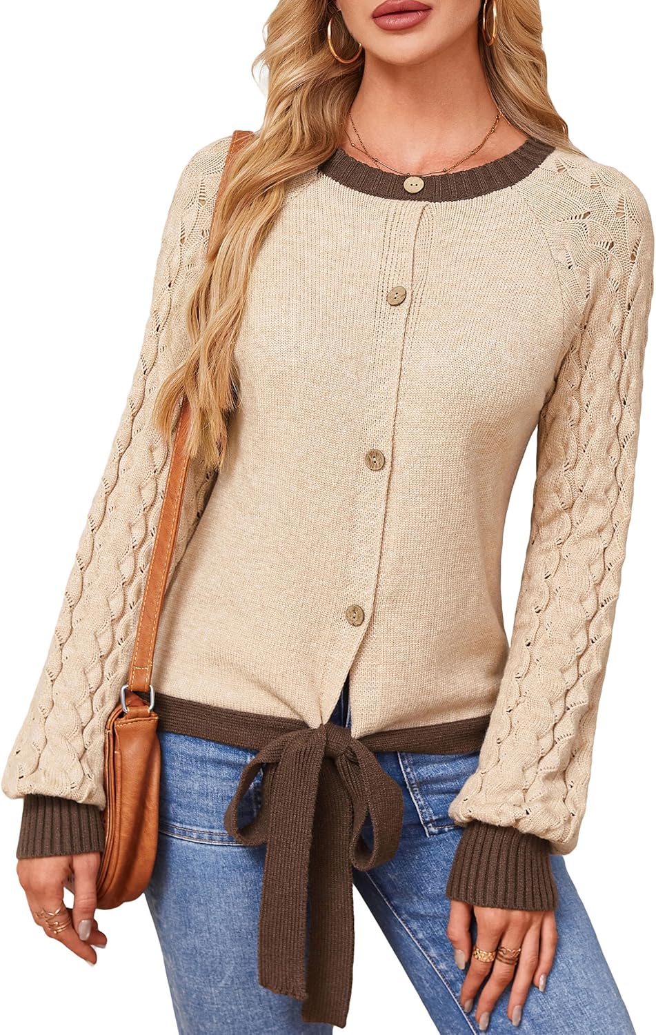 AOVDE Women's Sweater 2025 Fall - Tie Back Long Sleeve Pullover Knit Sweaters Crew Neck Fashion Y2K Sweater Tops
