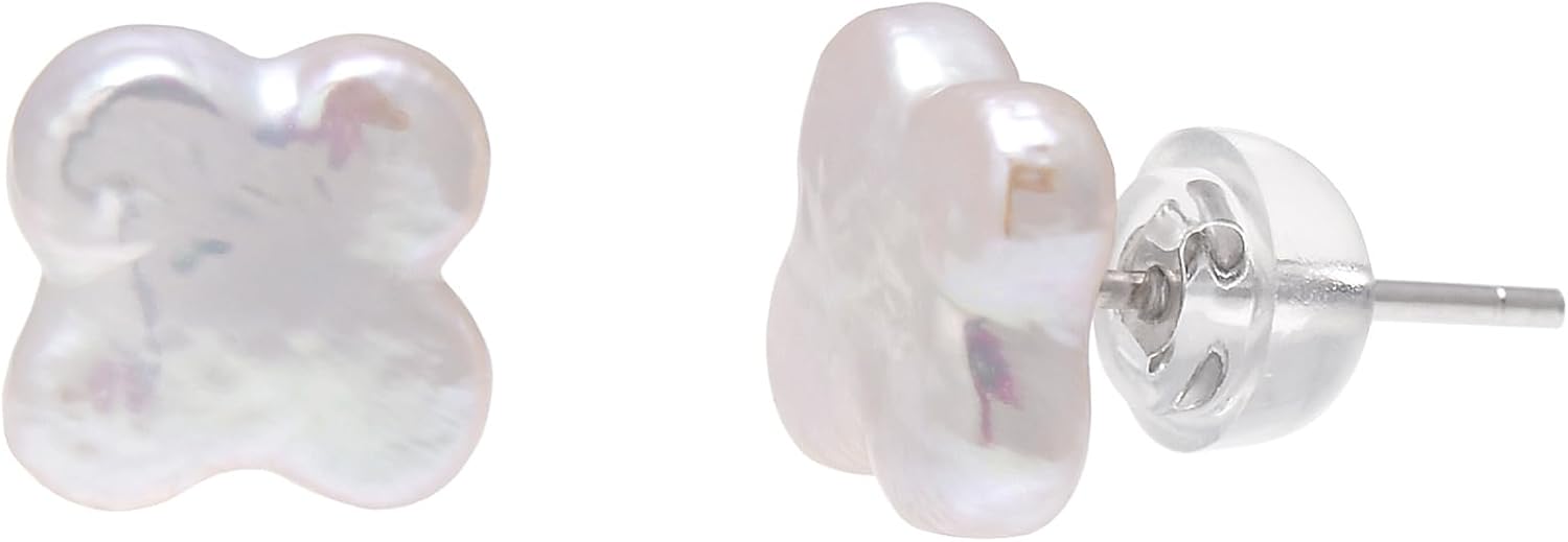 Clover - Freshwater Cultured Baroque Pearl Studs Earrings for Women, Sterling Silver Earrings