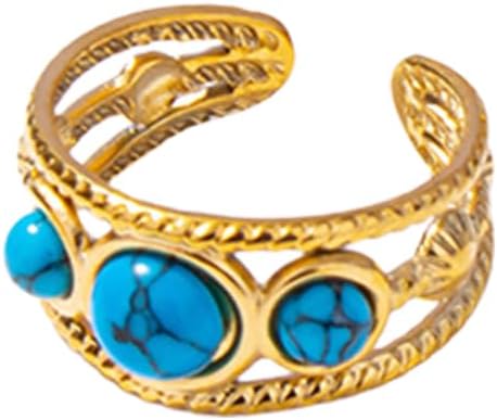 Turquoise Ring, Boho Western Rings for Women, Gold Stainless Steel Ring for Turquoise Jewelry, Vintage Gold Adjustable Rings for Women