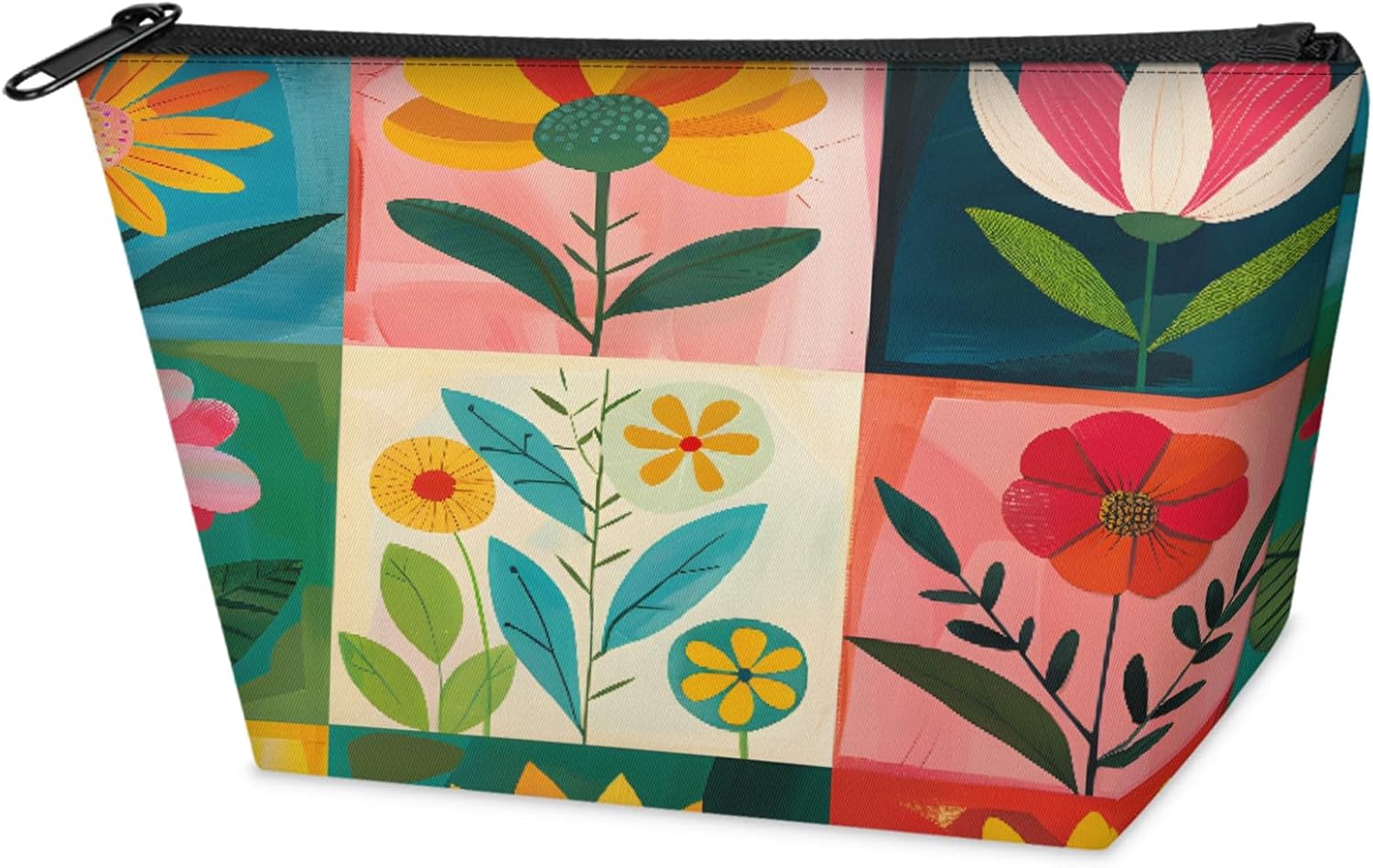 Bold Flower Canvas Small Cosmetic Bag for Travel, Waterproof Makeup Bag with 2 Mesh Pockets, Portable Toiletry Bag Mini Organizer for Gym, Business Trip, Camping