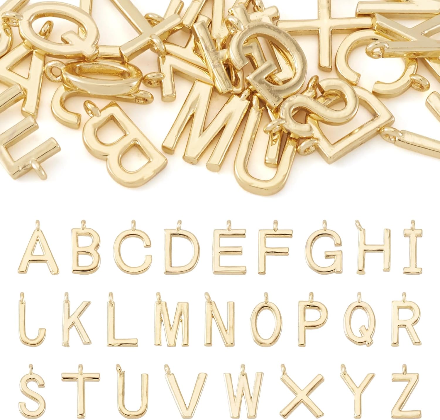 Beadthoven Full Letter Charms for Jewelry Making, Real 18K Golden Plated Brass A-Z Bubble Letter Pendants Dangle Beads Capital ABC Initial Charms for Jewelry Making DIY Necklace Keychain Craft