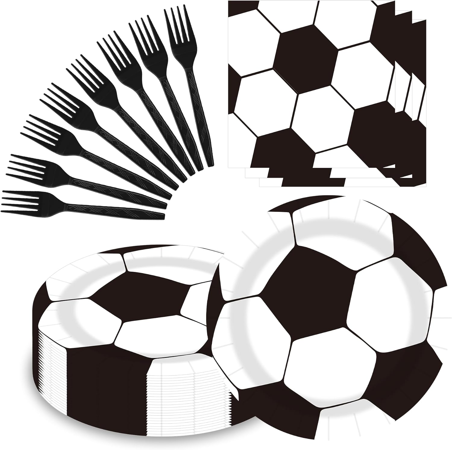 - 🥇Fully Immerse In The Soccer Theme: The Tableware Features Classic Soccer Motifs, And The Black And White Color Scheme Complements The Sports Theme, Creating A Lively Atmosphere For A Football Fan Birthday Party, A Game Viewing Party, Or Even A Sports-Themed Event.
