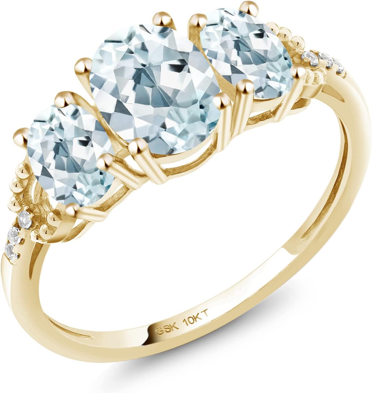 Gem Stone King 1.77 Cttw 10K Yellow Gold Oval Sky Blue Aquamarine and Diamond Accent Engagement Ring for Women | Gemstone Birthstone | Oval 7X5MM and 6X4MM