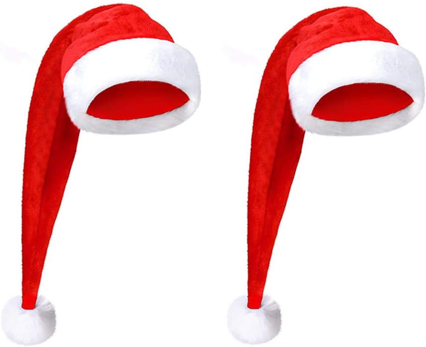 ALIMITOPIA 75 cm Christmas Santa Hat Deluxe Plush Long-tail Christmas Santa Claus Xmas Cap Hat(2pcs,One Size Fits All)