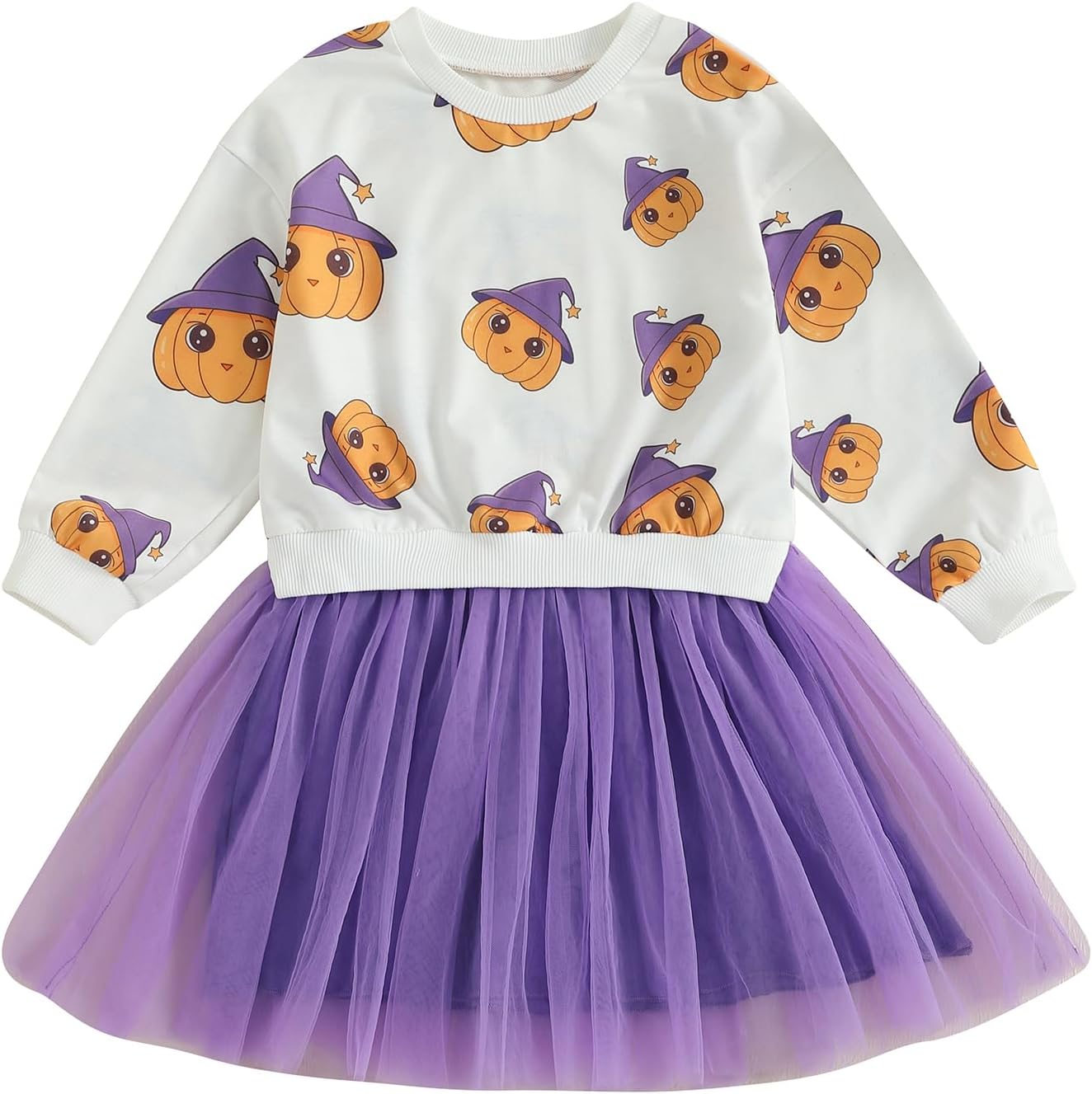 Toddler Baby Girl Hallween Dress Pumpkin Printed Long Sleeve Tulle Dresses Halloween Costumes Girls