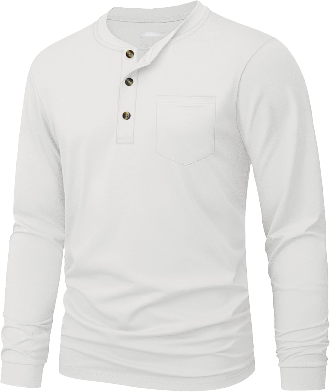 MAGNIVIT Mens Henley Shirts Long Sleeve with Pocket Fall Cotton Casual T-Shirts Plain Moisture Wicking Tee with 3 Button