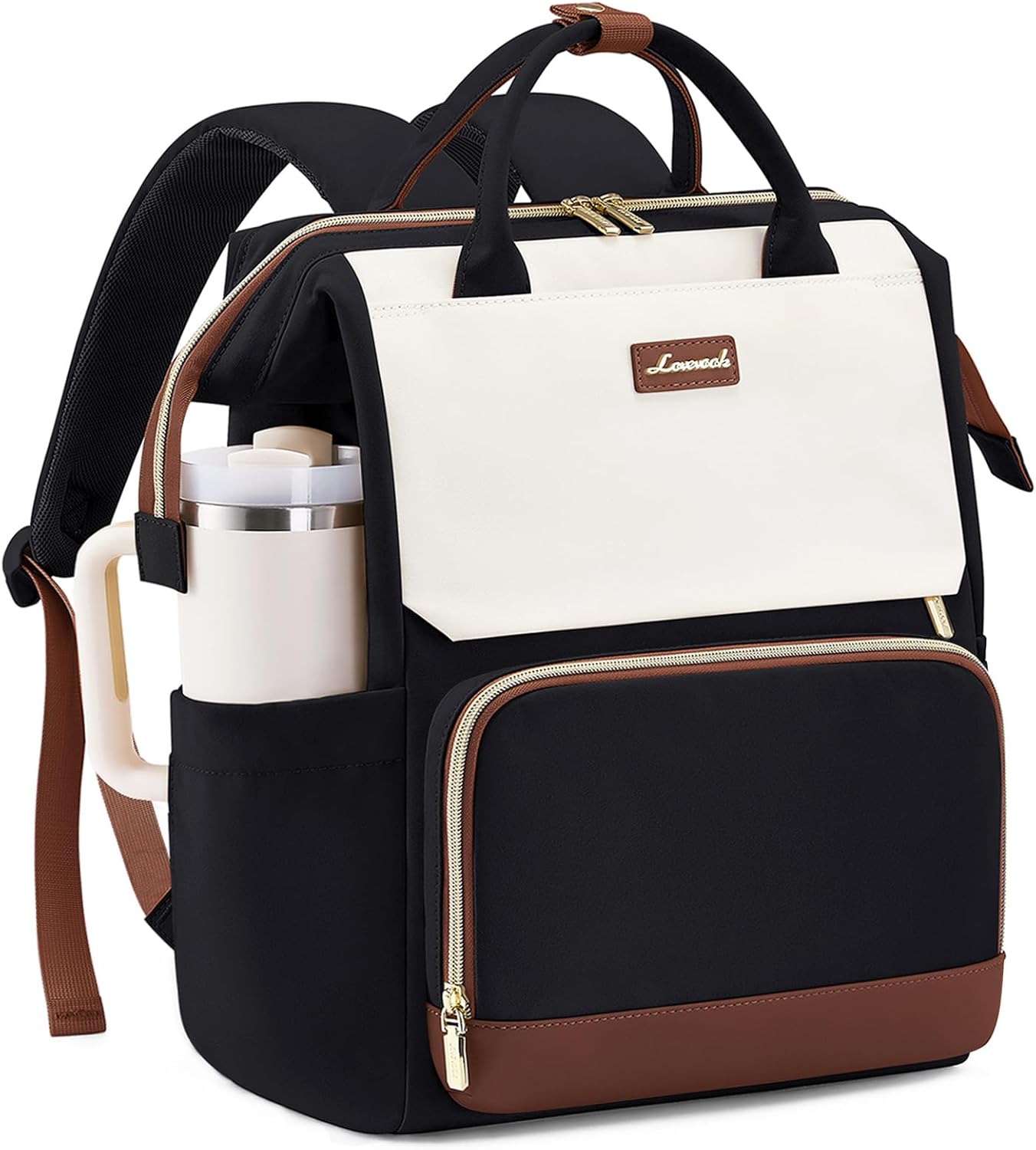 LOVEVOOK Laptop Backpack for Women with Giant Tumbler Holder Pocket, 15.6 inch Travel Work Backpack Purse for Nurse Teacher, Waterproof School Bag College Bookbag Cute Casual Daypack for Girls