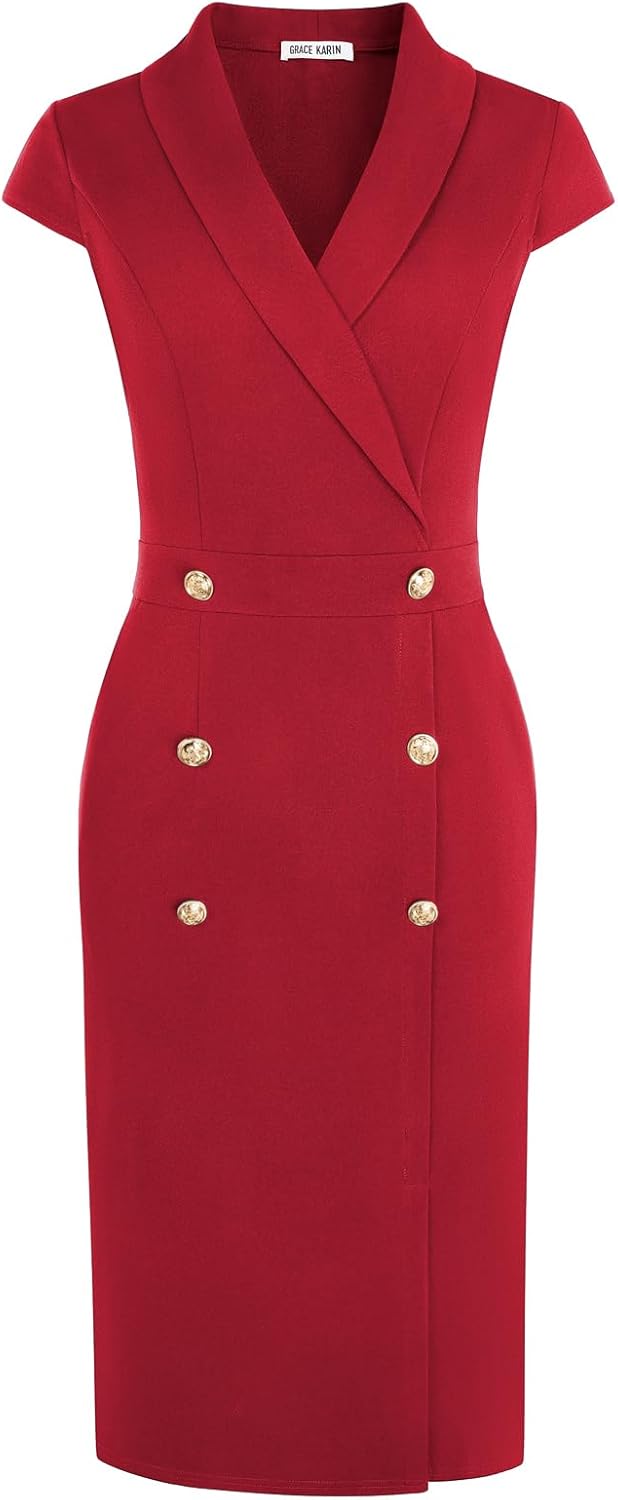 GRACE KARIN Women Work Bodycon Dresses 2026,Business Office Midi Cap Sleeve Button Pencil Formal Outfits with Pockets