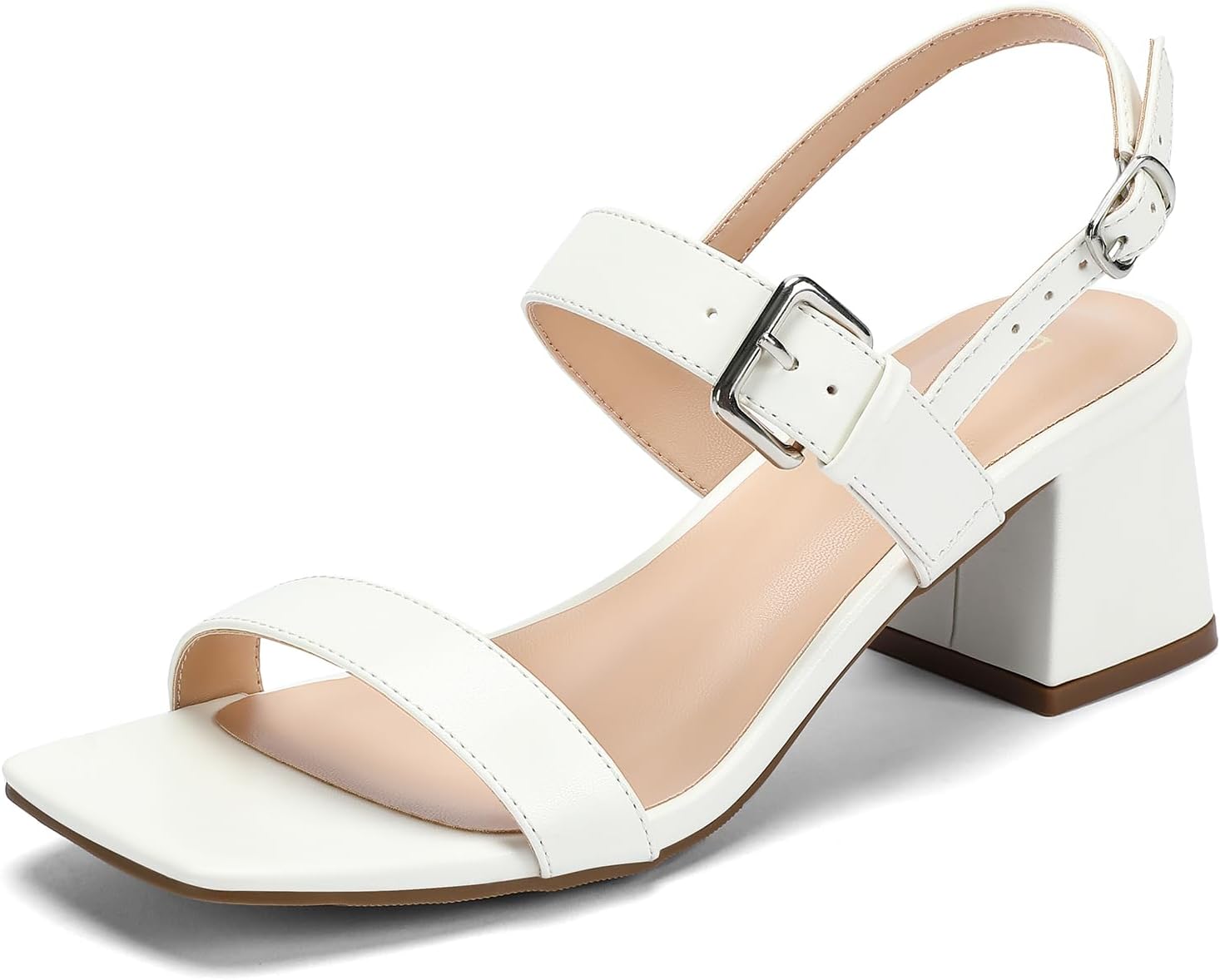 Women's Heeled Sandals Block Chunky Square Open Toe Ankle Strap Heel Wide Feet Dress Sandals