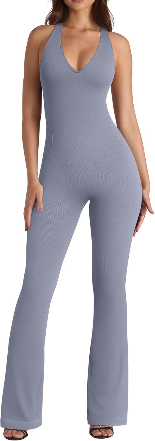 OQQ Jumpsuits for Women Fall Winter Halterneck Sleeveless Lace-Trim Flared Jumpsuit
