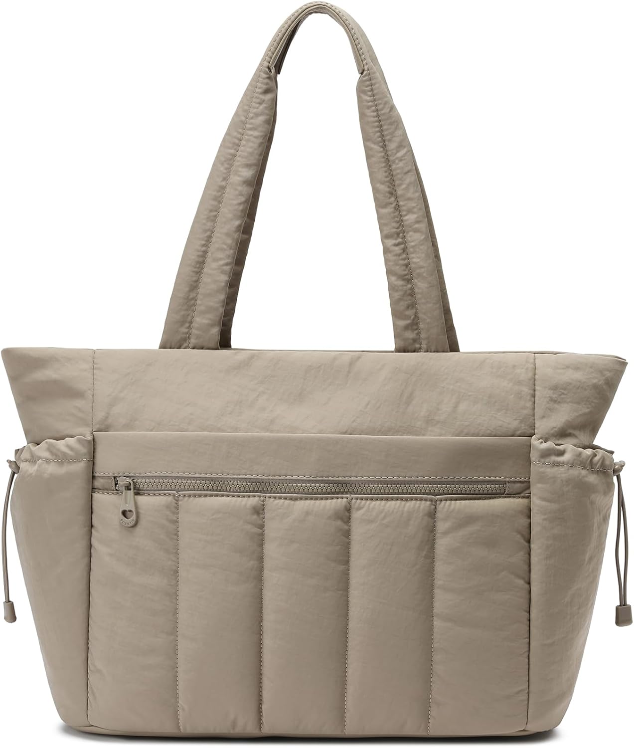 Tote Bag for Women, Lightweight Puffer Tote Bag with Compartments, Quilted Shoulder Bag Handbag with Zipper for Work