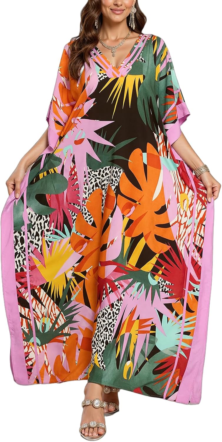 Plus Size Mumu Dresses for Women - Boho Batwing Sleeve Caftan with Side Slits, Long...