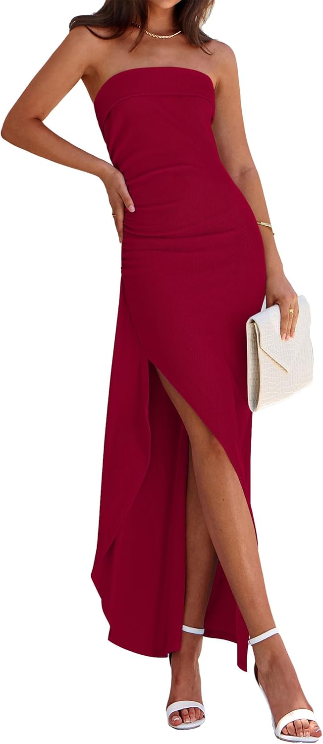 PRETTYGARDEN Women's Ruched Bodycon Dresses Summer Off Shoulder Asymmetrical High Split Elegant Cocktail Party Dress