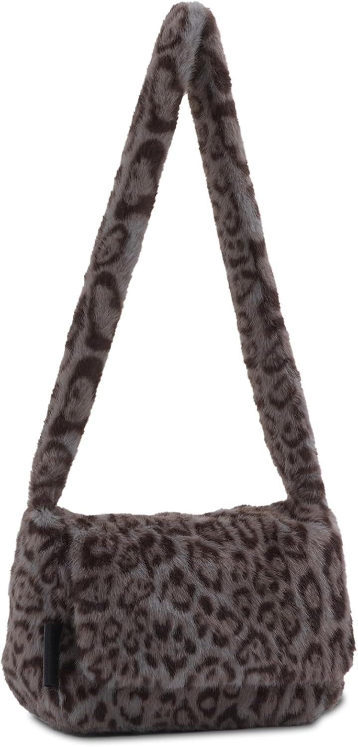 KUANG! Faux fur Hobo Handbag Leopard Print Plush Tote Bag Large Capacity Crossbody Purse Winter plush Shoulder bag