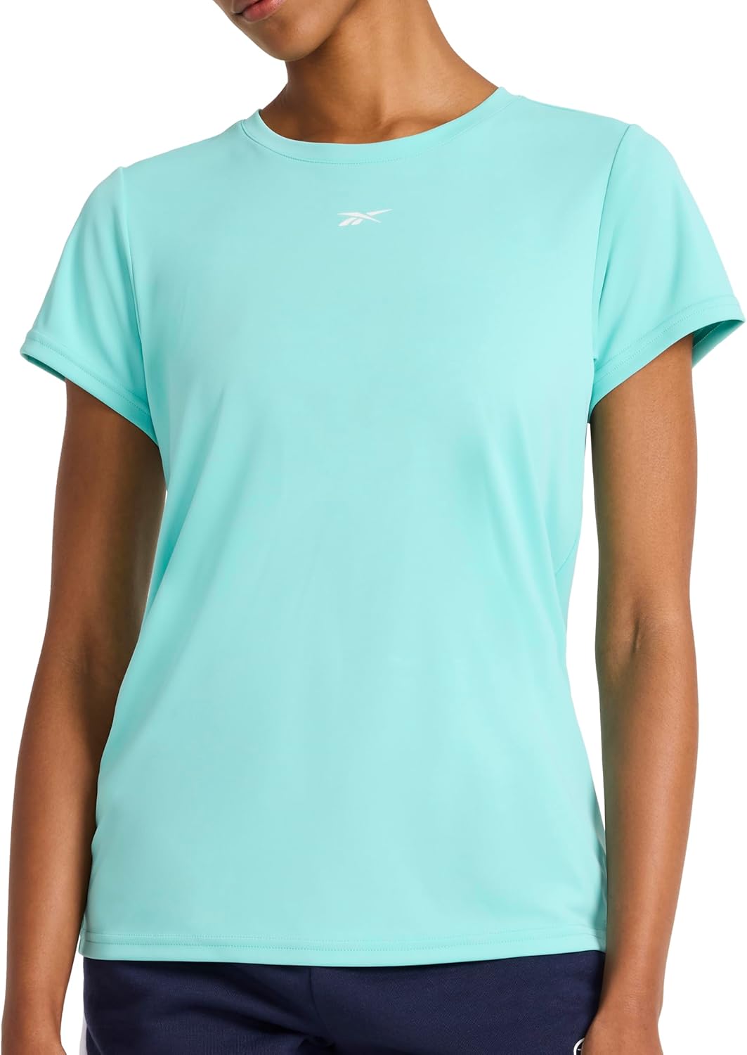Reebok Womens Small Logo Short Sleeve Crewneck T-Shirt, Lightweight, Moisture Wicking
