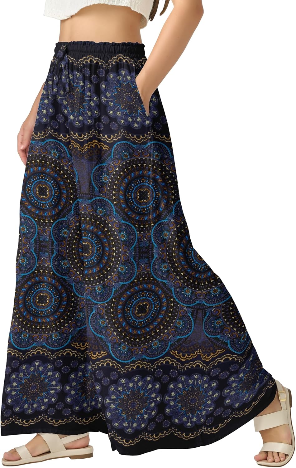 Joob Joob Palazzo Pants for Women - Wide Leg Flowy Plus Size Dress Pants - Elastic Stretch Waist Womens Trousers with Pockets