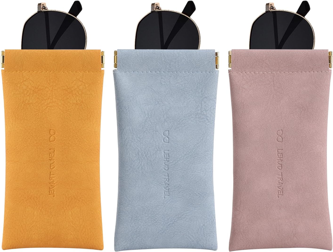 RIGHT AWAY 3Pcs Sunglasses Case Soft Glasses Case,Squeeze Top Eyeglass Case PU Leather Glass Pouch Bag for Women Girs