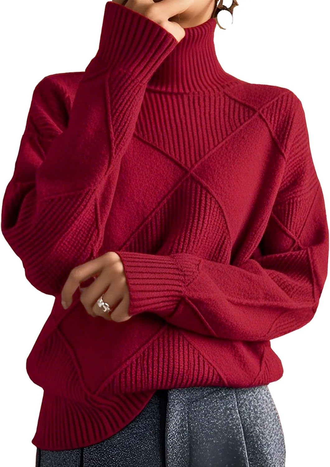 Womens Turtleneck Oversized Cable Knit Sweaters 2026 Fall Winter Trendy Work Casual Pullover Cozy Warm Long Sleeve Knit Tops