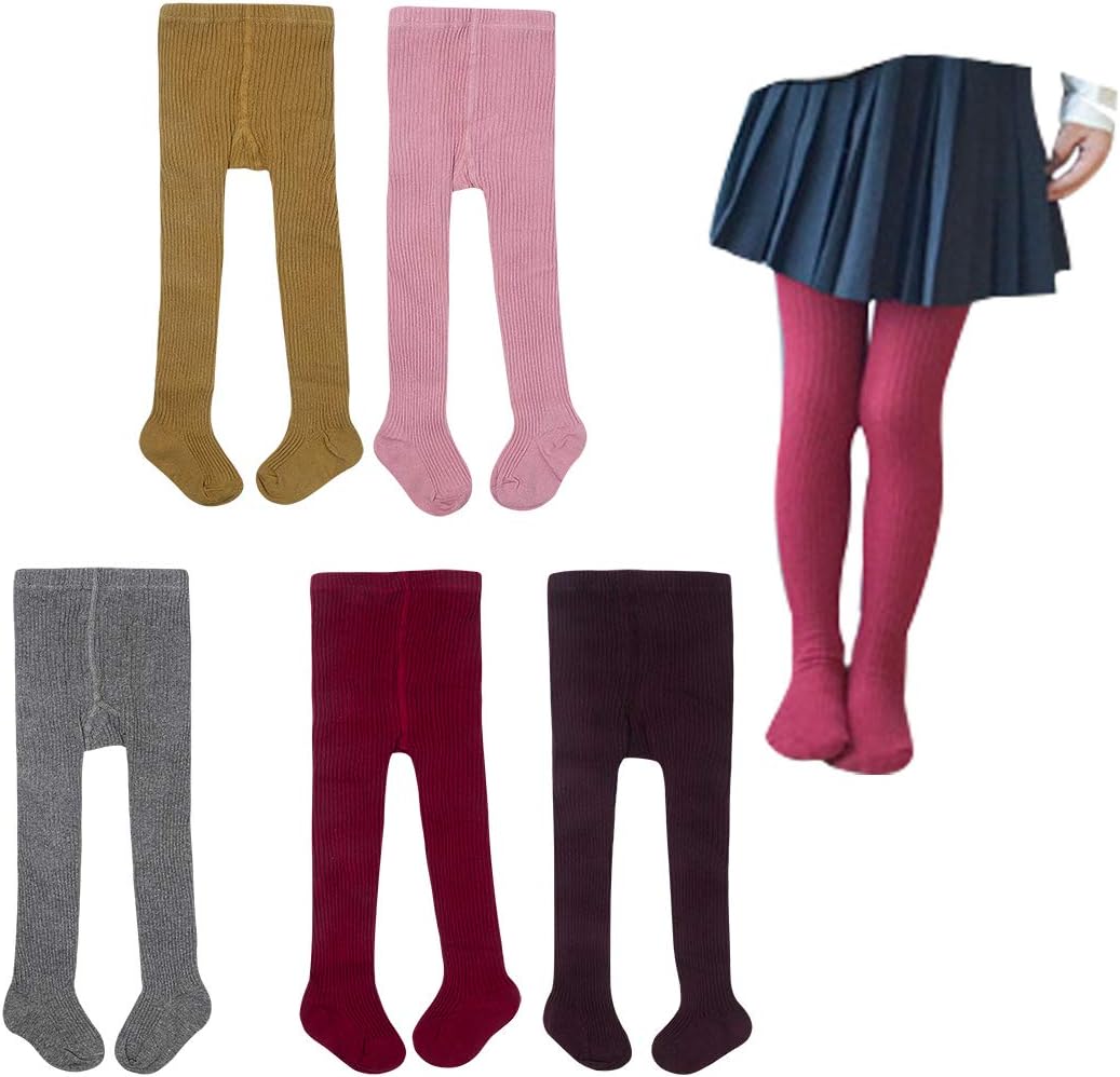 Looching 4/5 Pack Baby Girls Boys Tights Toddler Cable Knit Leggings Seamless Cotton Dress Cotton Footed Stockings