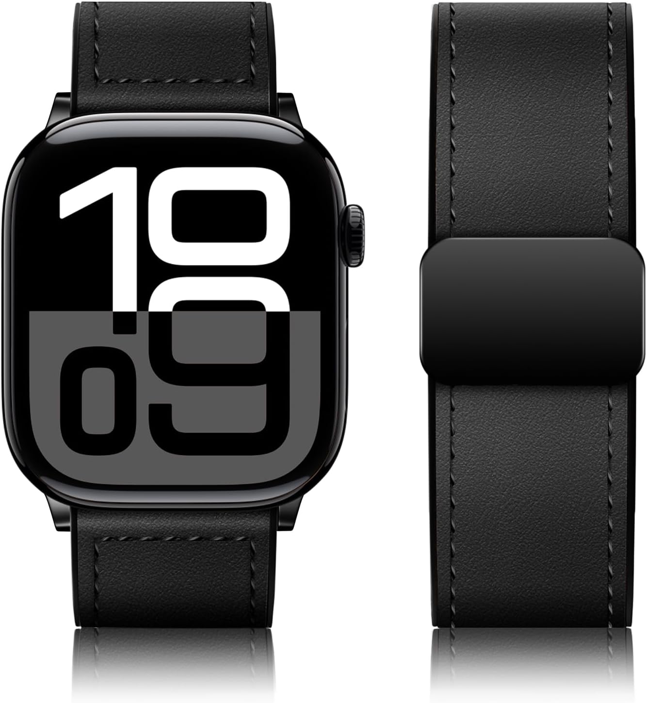 Qimela Magnetic Leather Strap Compatible with Apple Watch Band 38mm 40mm 41mm 42mm 44mm 45mm 46mm 49mm for Men Women,Top Grain Genuine Leather Wristband for iWatch Series 10 9 8 7 6 5 4 3 Ultra 2 1 SE