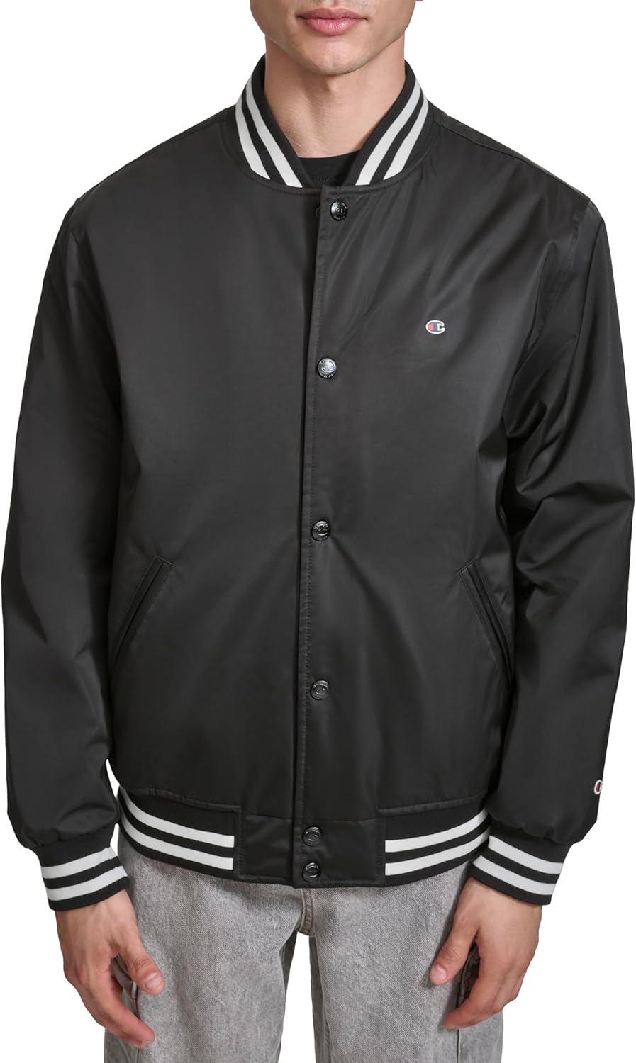 Champion Men's Logo Striped-trim Varsity Jacket