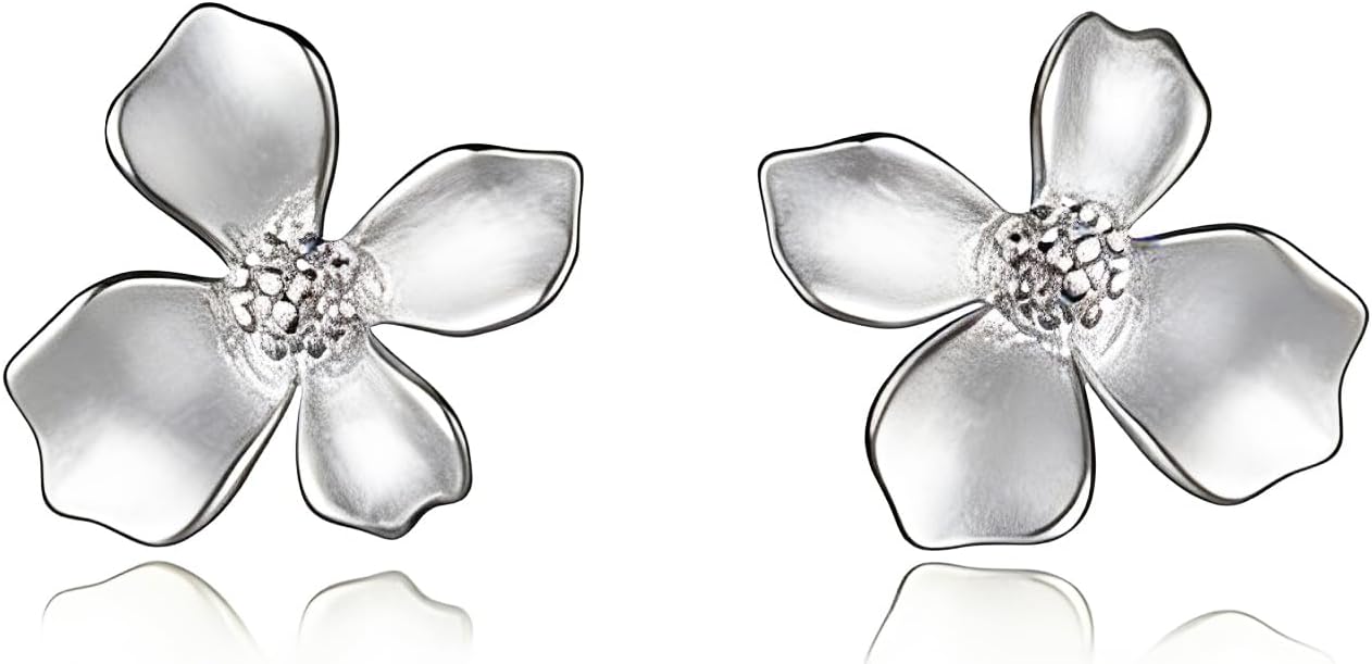 Solid 925 Sterling Silver Flower Stud Earrings for Women Teens Gardenia Flower Post Stud Earrings Wedding Hypoallergenic